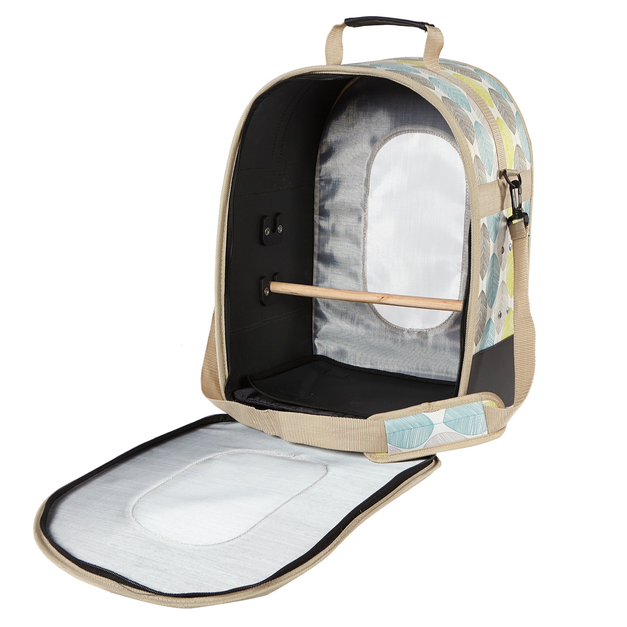 The Rainforest Cages Small Travel Bags are suitable for Budgies, Cockatiels, Conures and other similar sized birds. The Small Travel Bag features a cotton and nylon fabric construction, net windows, a carry handle and a zip around door. The Travel Bag also includes a shoulder strap and a wooden perch.