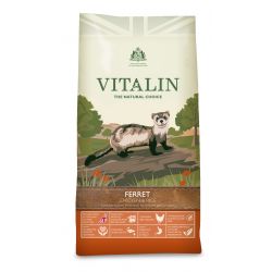 Vitalin Ferret is a nutritionally complete balanced premium ferret food in an extruded kibble, and does not require any additional meat or supplements. Vitalin Ferret is made with over 40% meat, including prime fresh chicken & premium chicken meat meal for maximum palatability and digestibility. As carnivores, it is essential that ferrets digest high levels of meat to provide the necessary proteins they require. Whole cooked rice is also included as an excellent source of natural carbohydrate.