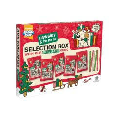 Selection Box for Dogs containing Choc Drops 50g, mini Marrow bones 50g, Turkey & Cranberry Bones 40g, Yuletide Yummies 50g, Beef Bonies 50g and Munchy Roll 5 Pack.