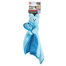 This cute and cuddly plush blanket with adorable character head is the perfect way to soothe and comfort puppies and toy dog breeds.