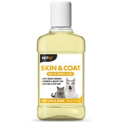 VETIQ Skin and Coat is an edible skin and coat conditioner, specifically formulated to promote healthy skin and a glossy coat. Skin and Coat Oil contains a unique blend of ingredients which provide a highly concentrated source of Omega 3 and Omega 6 fatty acids, essential for a lustrous, glossy coat. In addition, Vitamin E has been included to help sooth dry and flaky skin and to reduce excessive moulting. VetIQ Skin and Coat not only produces a noticeably healthier skin and coat but also contributes to a well-balanced diet for your pet.